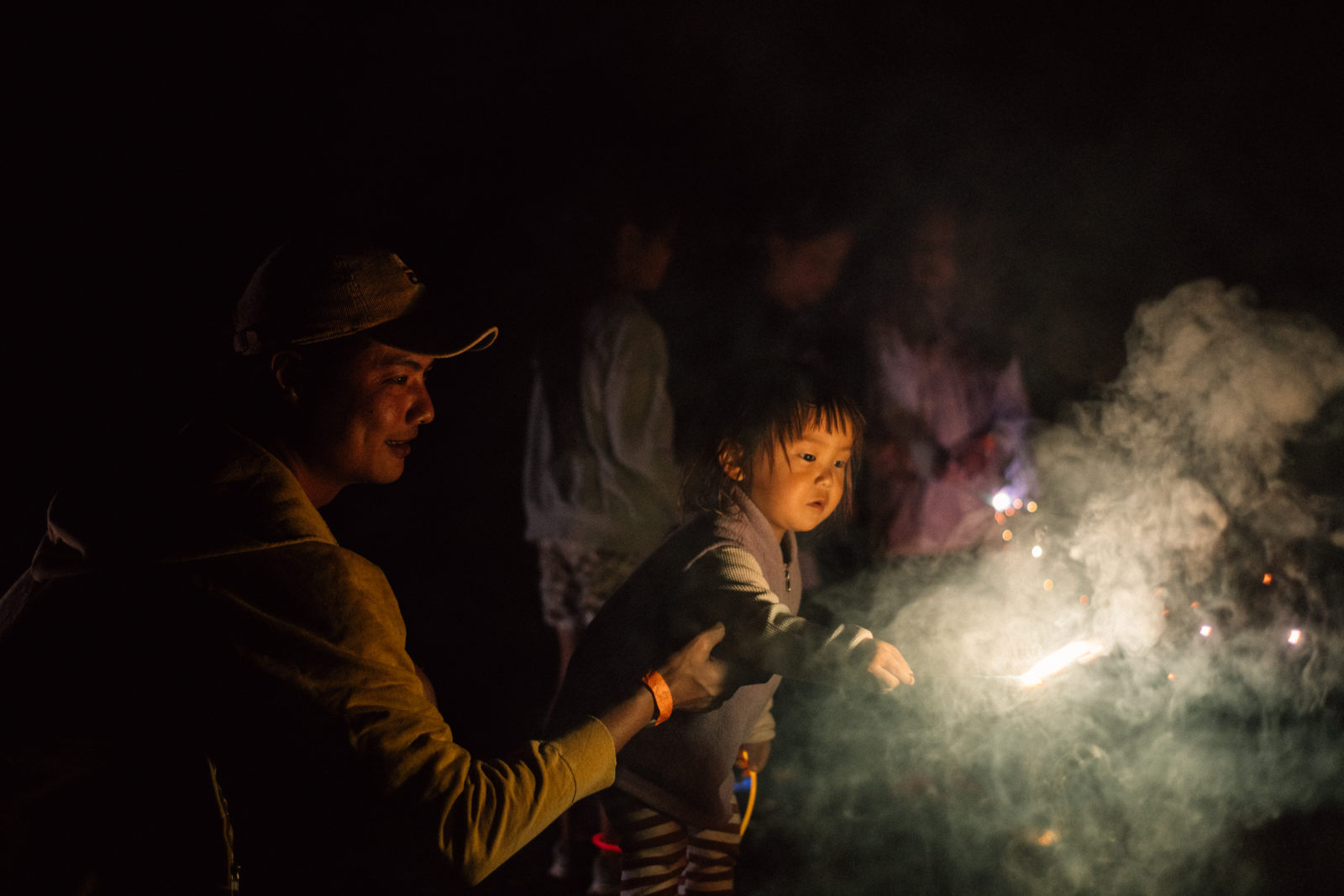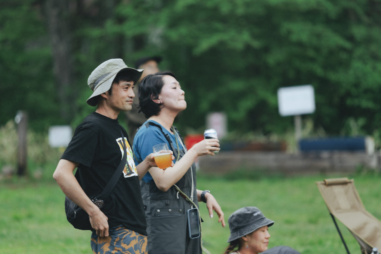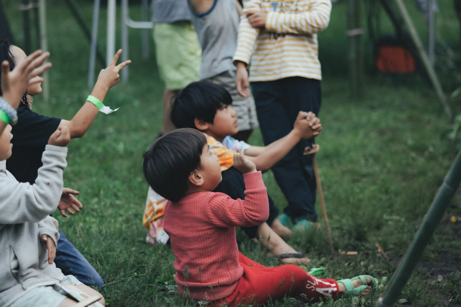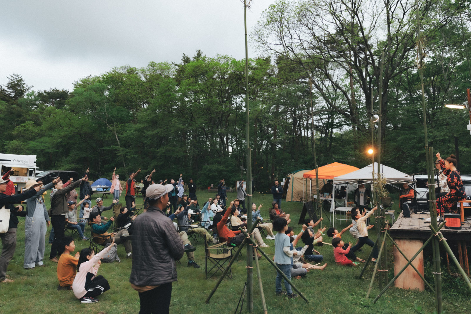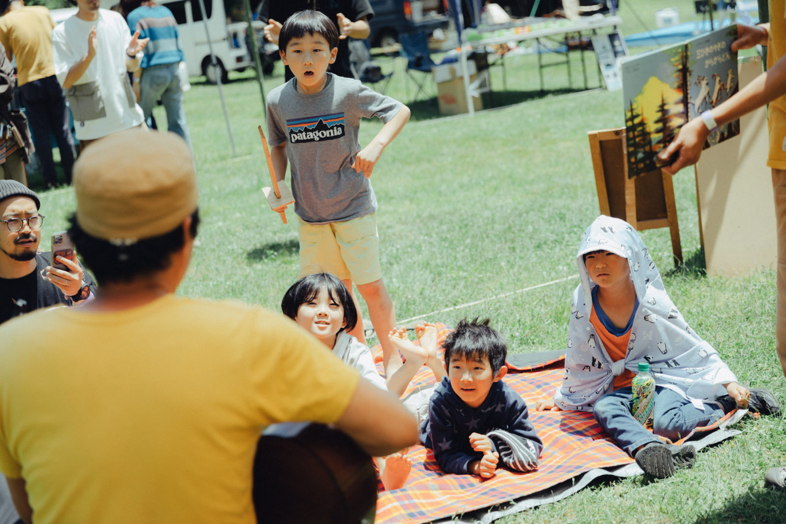 ポツポツとランタンに火が灯り始める夕暮れになると、この日のスペシャルアクトであるbirdさんが登場。アコースティックギターに合わせてジャジーな歌声を響かせました。うっとりとステージを見つめる大人たちをよそに、ステージ前を駆け抜ける子どもたち。「めっちゃ走るやん(笑)」、そんなツッコミもありつつ、後半は限定Tシャツをかけた“じゃんけん大会”で大盛り上がり!大人で愉快な音楽のひと時に、ついついお酒も進んでしまいました。