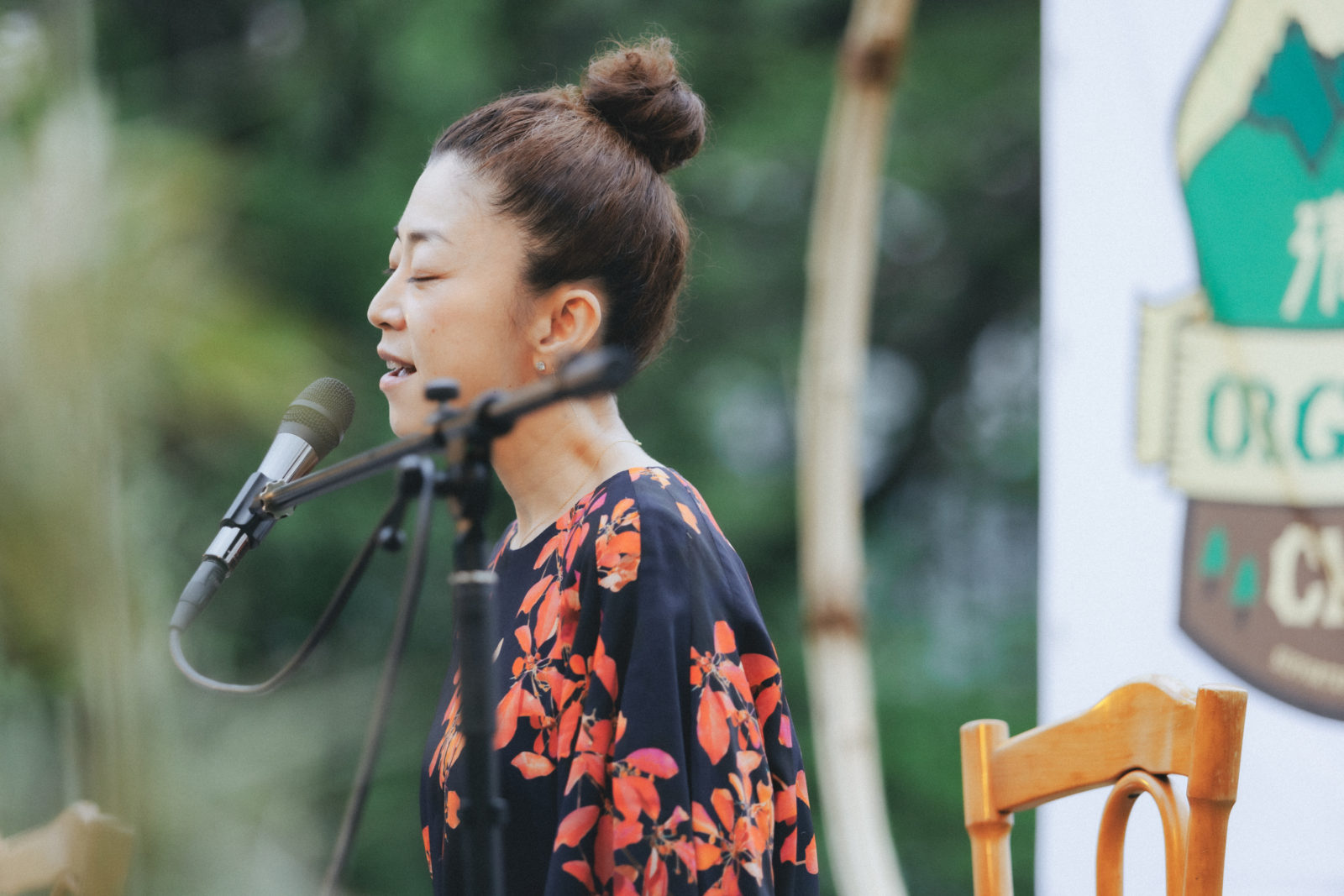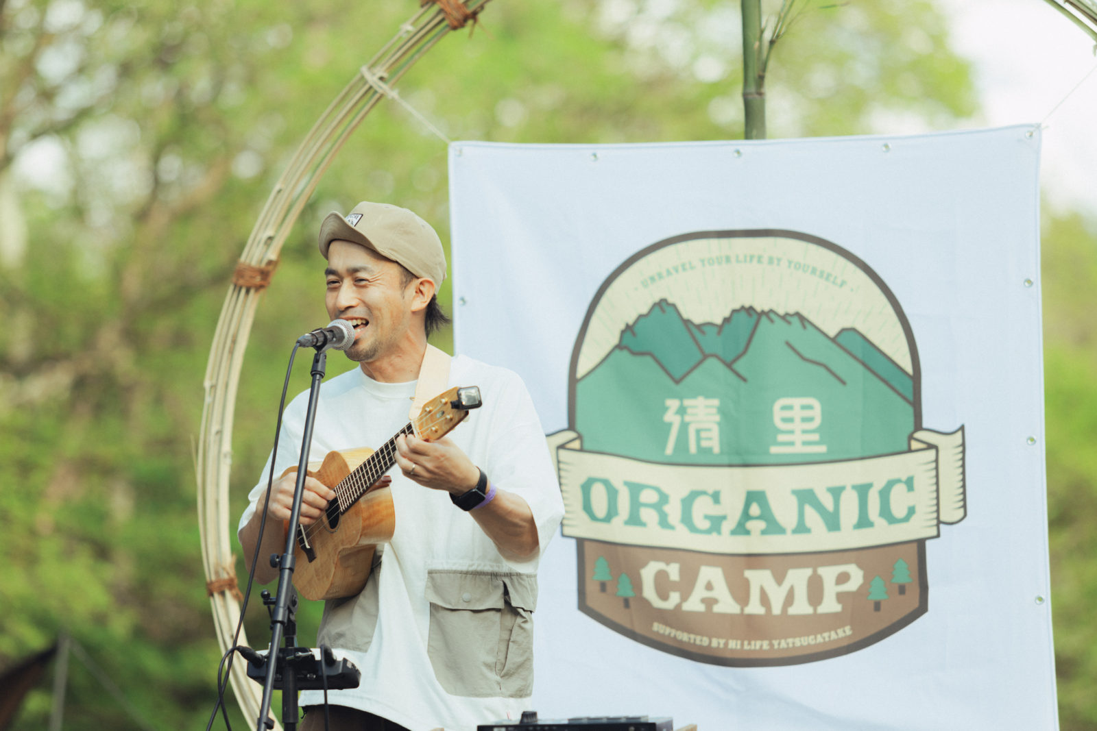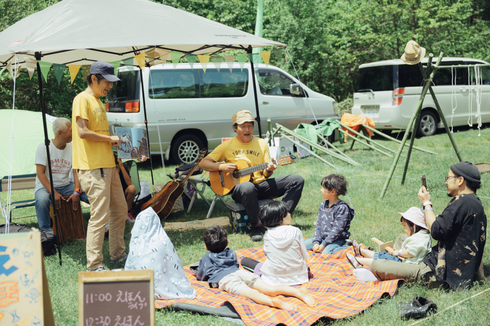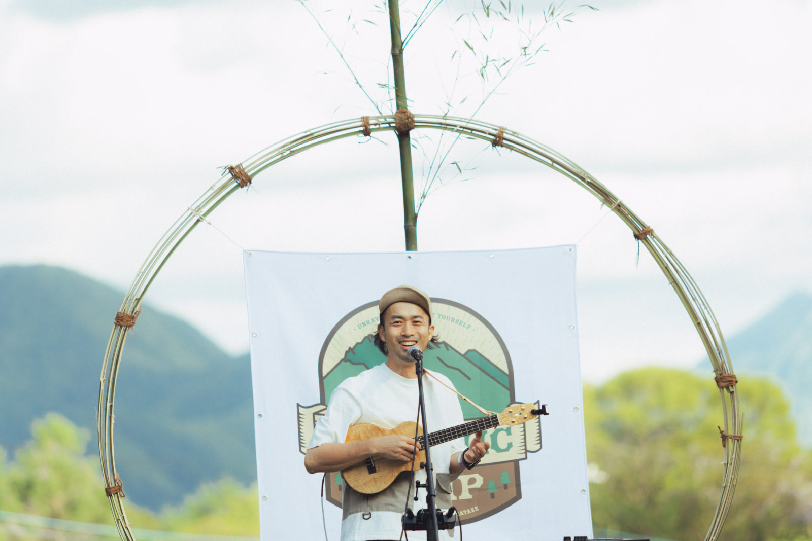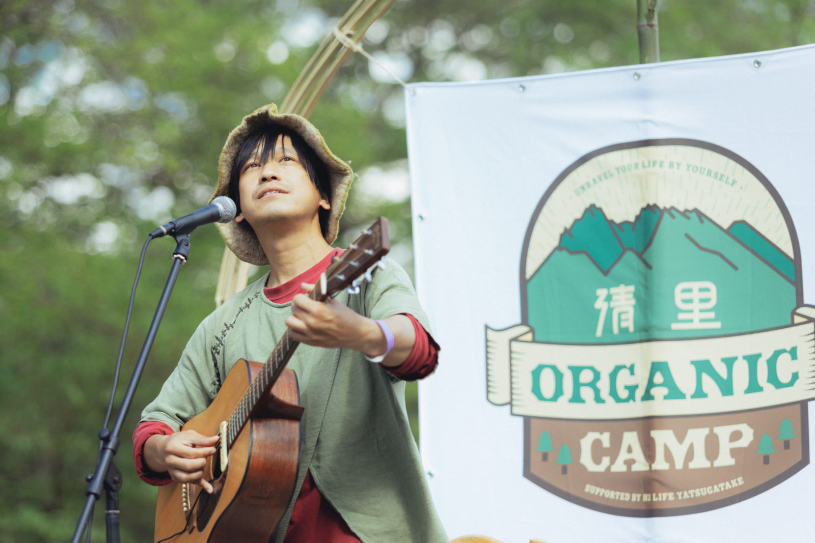 山田 証さんのステージでは、優しく語りかける歌声が森の中へ溶けていくような、和やかでしっとりとしたライブを披露。歌詞に散りばめられたわが子たちの言葉や、環境教育に視点を置いたメッセージが印象的でした。