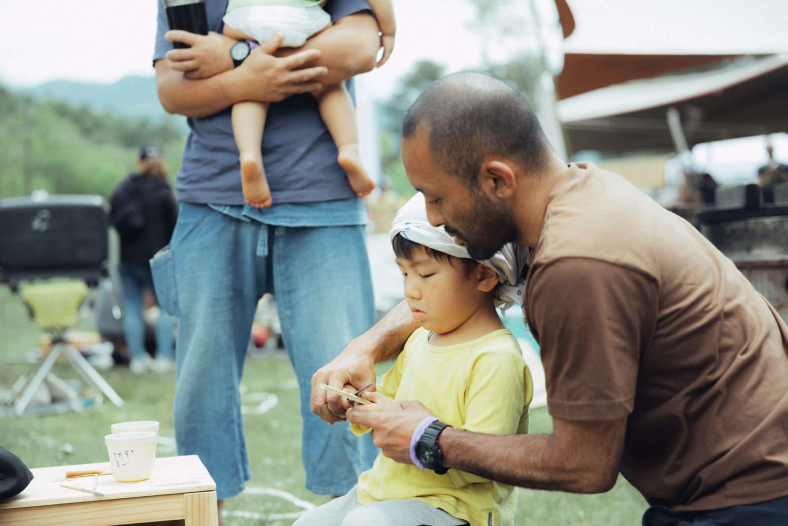 他にも、廃材を使って軽トラックの上に小さな部屋を作る「手作りの家入門」や、薬研を使ったオリジナルの「my七味作り」、 シカの角を使ったオリジナルアイテム作りに、鶏の解体体験 etc..。ライブステージに登場したbirdさんの言葉を借りるなら「ほのぼの系からワイルド系まで」本当に多種多様なワークショップが来場者を出迎えました。地元北杜市からの出店も多数あり、出店者たち自身が積極的に世代や地域をこえた交流を楽しむ姿も。ここでは全てご紹介しきれないので、ぜひコンテンツページやフォトレポートもご覧になってみてください。