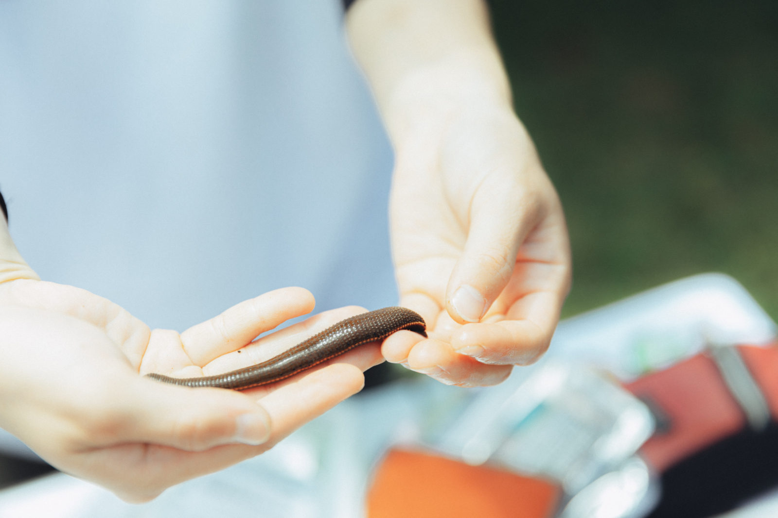 衝撃の一言と相反するキュートな笑顔で来場者を驚かせていたのが、通称「ひるちゃん」こと平川 瑠菜(ひらかわ るな)さん。帝京科学大学で環境学を研究しながら、こうしたイベントでヤマビルや昆虫食などの魅力を伝えている“ヤマビル伝道師”です。くねくねと首を伸ばすヒルや昆虫食のテイスティングに、悲鳴だとか「かわいい!」だとか様々なリアクションが飛び交います。